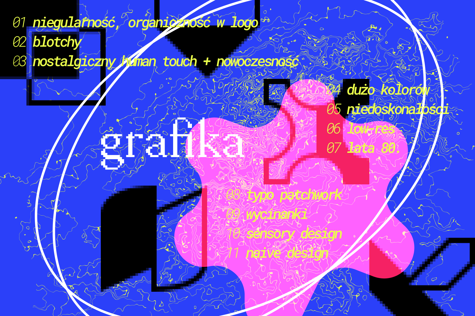 - organiczne, nieregularne kształty i blotchy